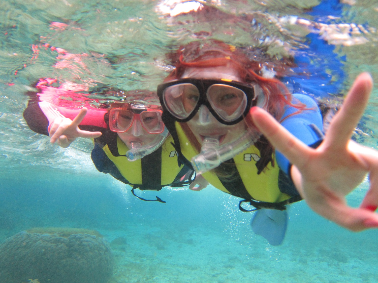 他店では始めから終りまで“浮き輪から手を離しちゃだめ”って言われたりするけど当店のスノーケルではインストラクターの管理下の下自由に泳いでいただきます。