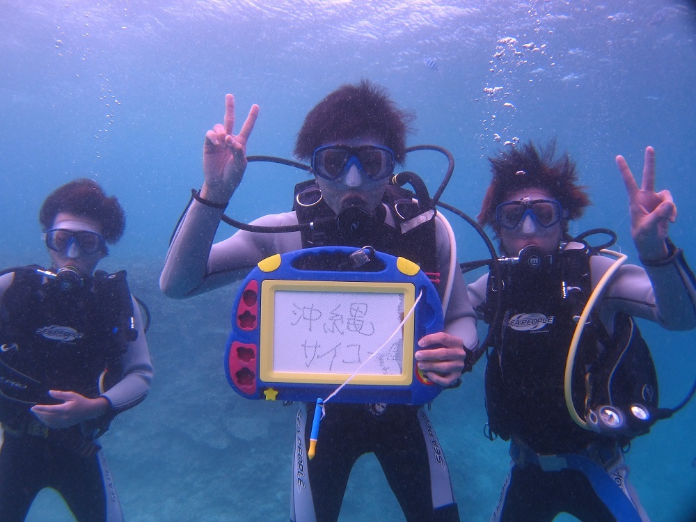 “あいぷま”ではみなさんにダ イビングを楽しんでいただき、体験ダイビングだけでなくこれからのダイビングを楽しんでいただくために思いっきり楽しんで潜っていただいて本当の海の世界 の楽しさを味わっていただく為に体験ダイビングには特にこだわって頑張っています。